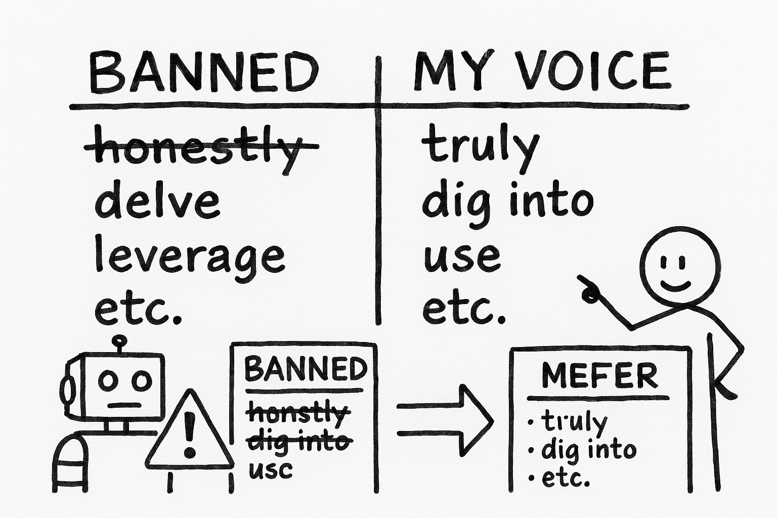 And the output sounds more like me than my "fully written by myself" drafts used to—because I've documented patterns I didn't consciously know I had.