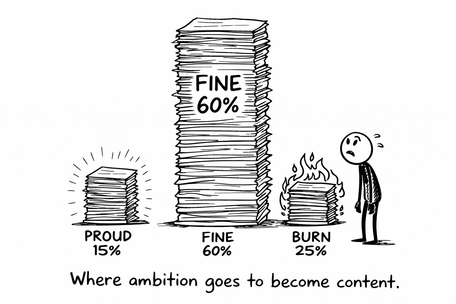 Pull 2-3 pieces from the Proud pile. Pull 2-3 from the Burns. Set them side by side. You’re looking for the difference between you at your best and you on the worst day you were still willing to hit publish.