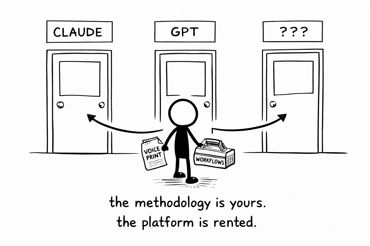 For creators building on any AI platform: don’t marry the platform. Build portable systems. Document your Voiceprint in a way that works across models. Design workflows that don’t collapse when a provider has a bad week. The methodology is yours. The platform is rented.