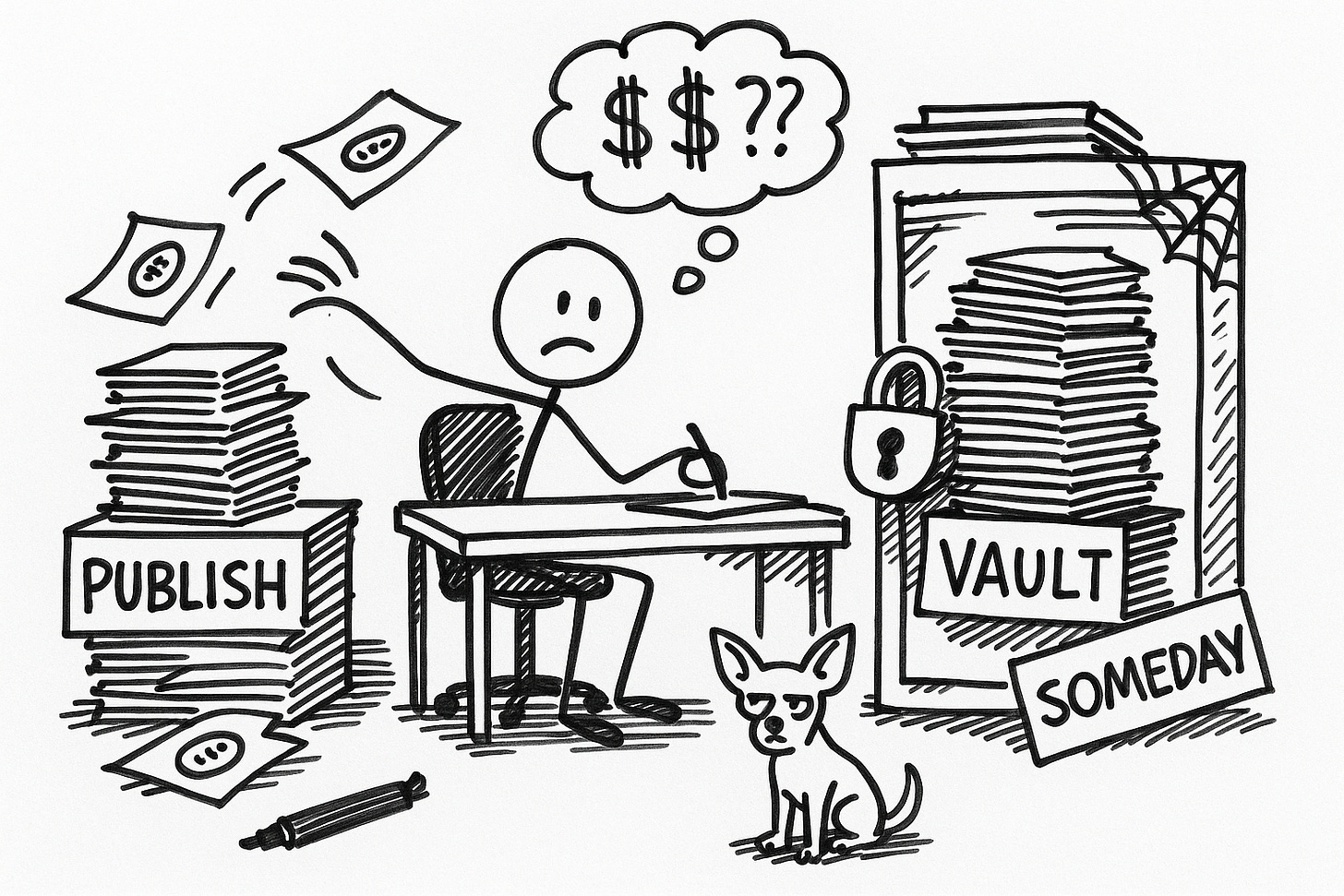 That’s the vault. That’s the hoarding. That’s Gresham’s Law eating my content strategy.