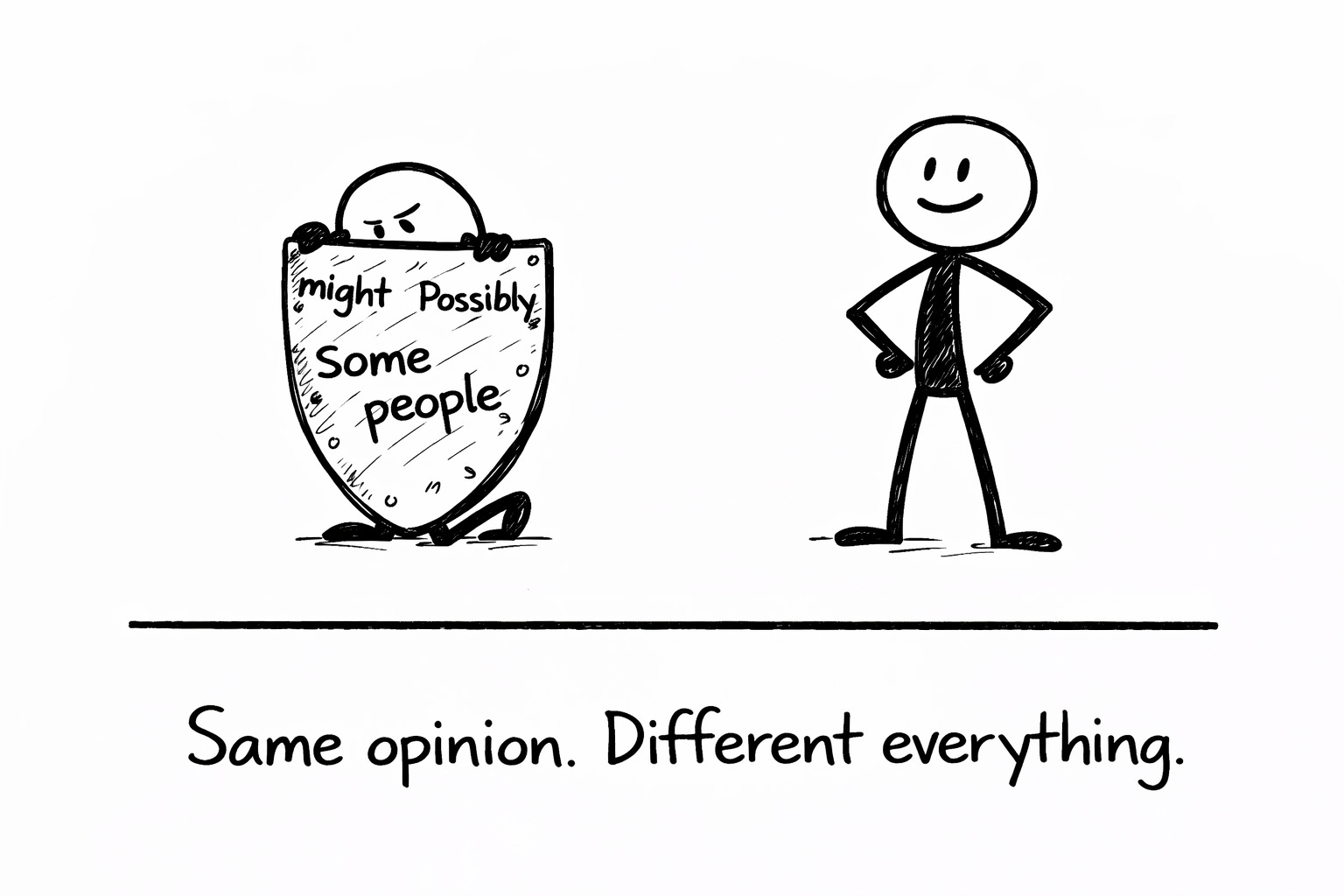 By the time they hit publish, the opinion is gone. Buried under a pile of qualifiers so thick you’d need an excavator to find it.