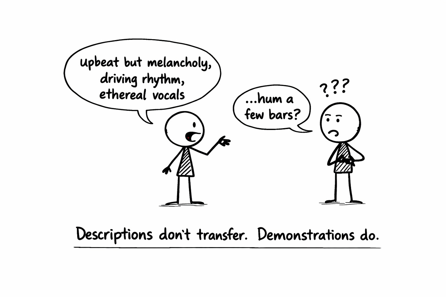 Instead of telling AI what your voice sounds like (and watching it average your adjectives into oblivion), you show it.