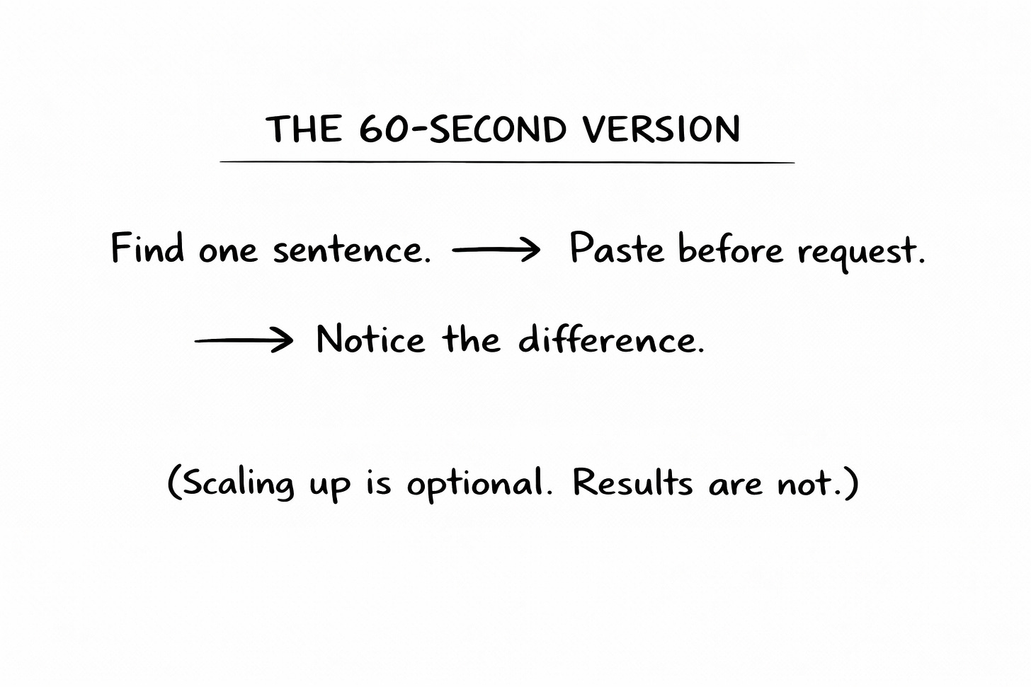 So here’s what I give everyone who isn’t ready for the full methodology: a shortcut that gets you 70% of the way there in ten minutes, without risking the “contradictory instruction soup” problem.