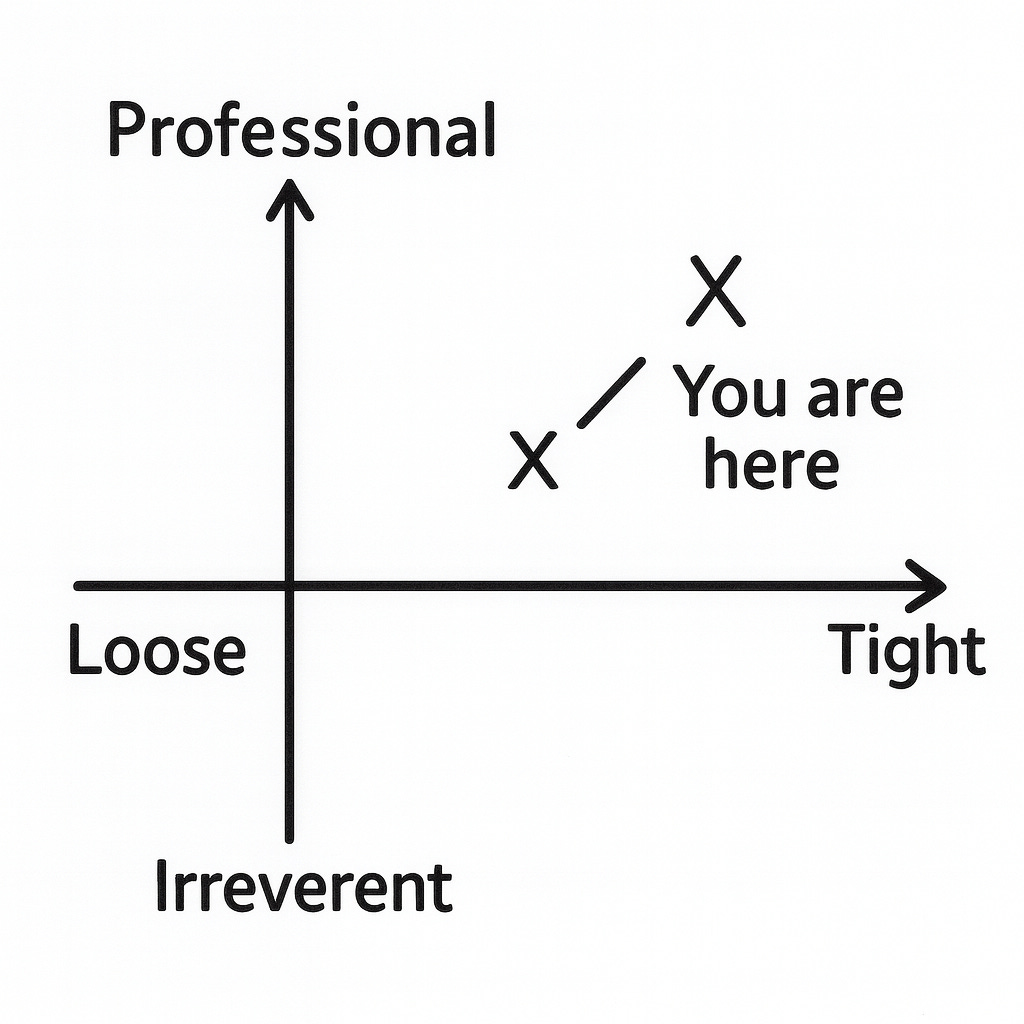 X-axis: Loose (1) = casual, unstructured | Tight (10) = polished, structured