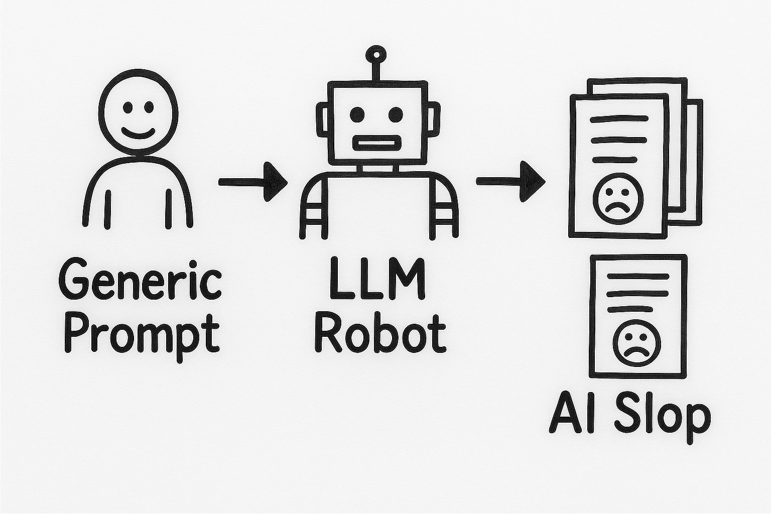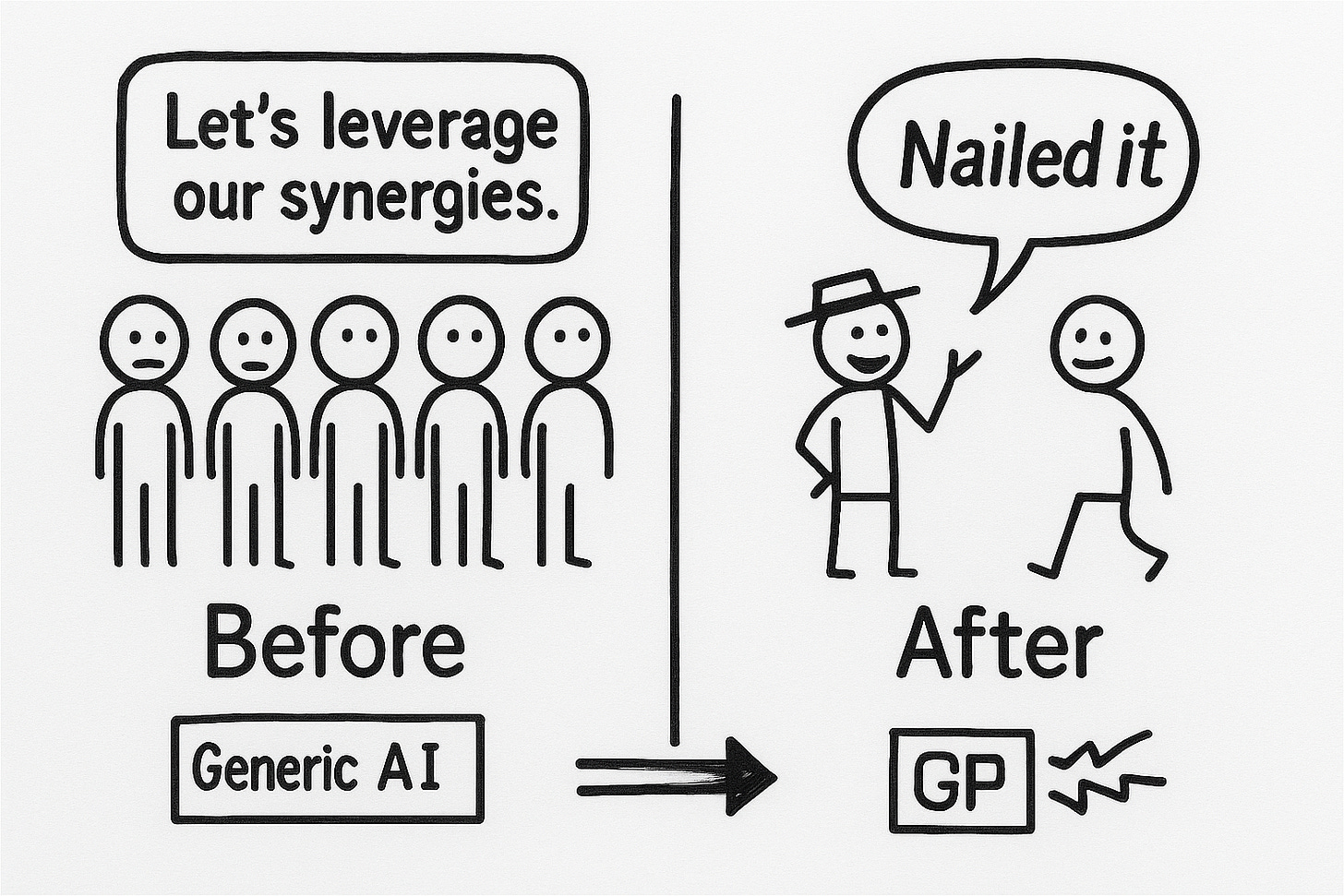 Then they're shocked when it spits out the same bland corporate-speak everyone else gets. Same structure. Same transition phrases. Same energy as a conference room motivational poster.