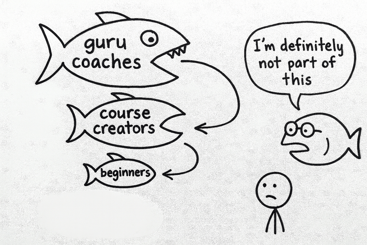 The gurus aren’t evil. Most of them genuinely want to help. But the incentive structure creates loops that benefit everyone except the person at the bottom buying the fifteenth course.