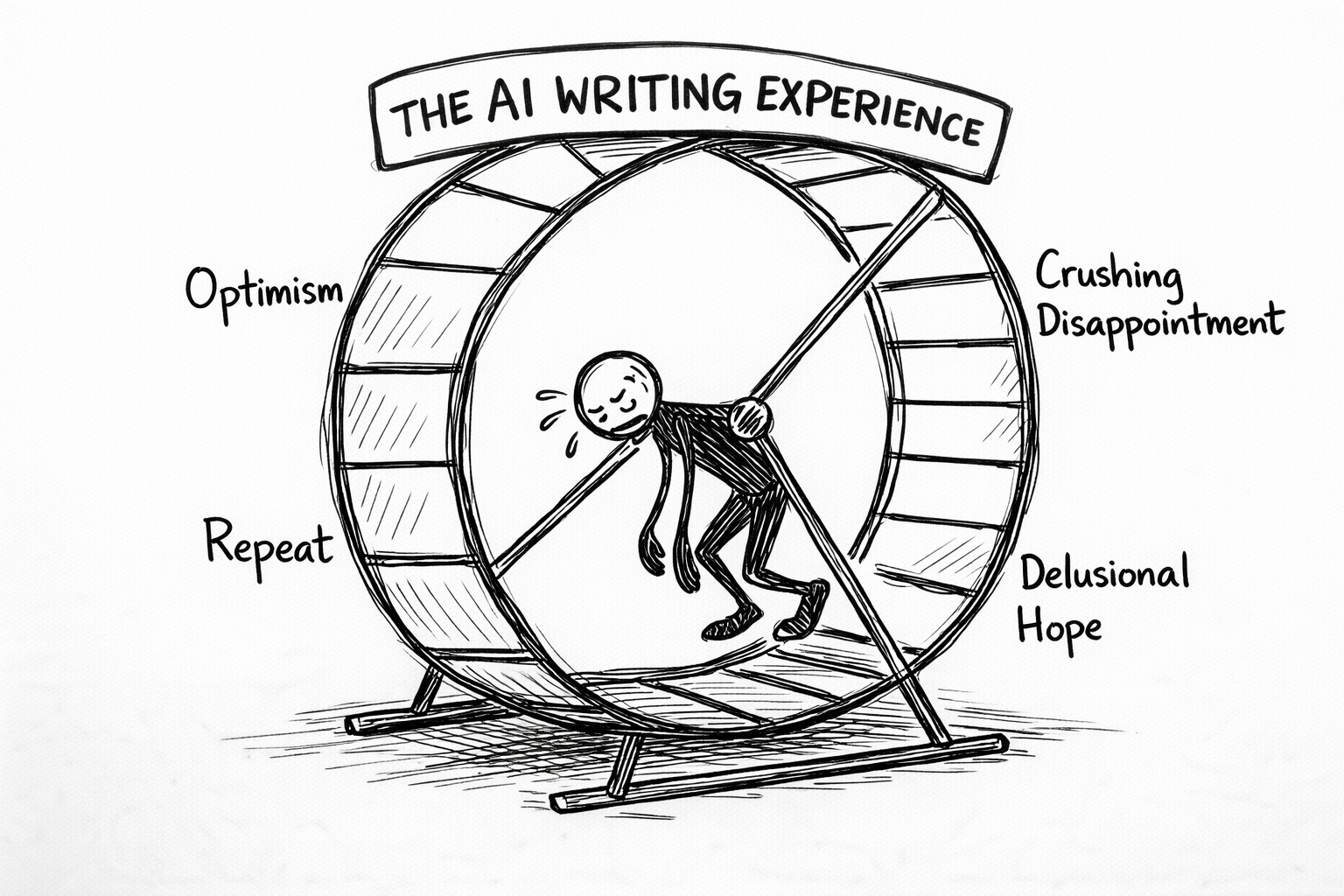 Prompt AI. Get generic output. Refine prompt. Get slightly different generic output. Wonder if I’m uniquely broken. Try again anyway because what else am I going to do, develop a healthy relationship with my limitations?