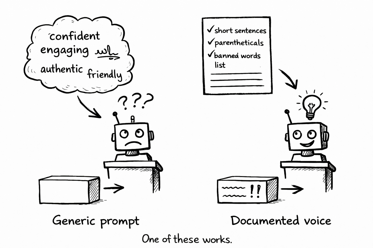 When it’s a Voiceprint—mechanical patterns, specific examples, a banned-word list—you’re giving it something it can actually execute.