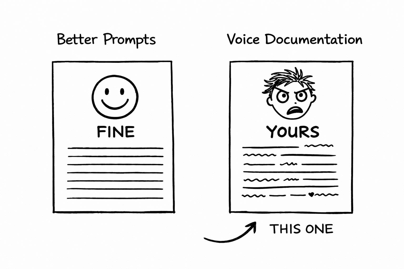 (This is also why the prompt engineering industry ignores it. You can teach someone to build a Voiceprint—the observation, the documentation, the calibration. But you can’t package your Voiceprint and sell it to 10,000 people. Skills don’t fit in a zip file. Shortcuts do.)