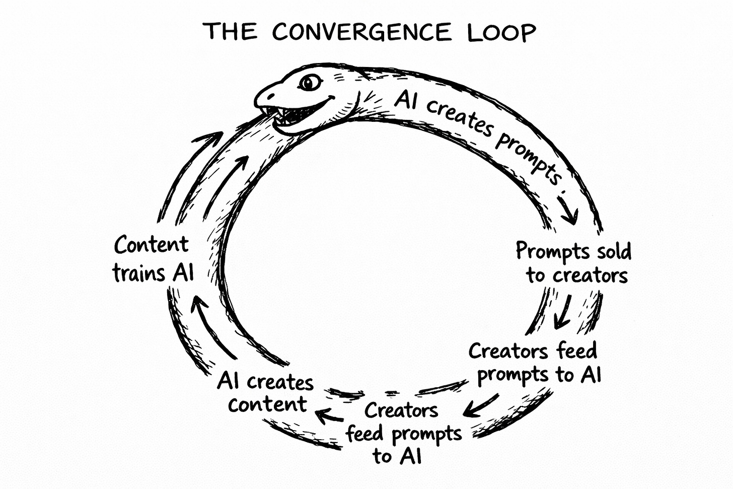 You’re buying AI-generated prompts designed to extract AI-generated content. Convergence creating convergence. The mean generating instructions to extract more of the mean. A perpetual motion machine of mediocrity—and they’re charging you $47 to be part of it.