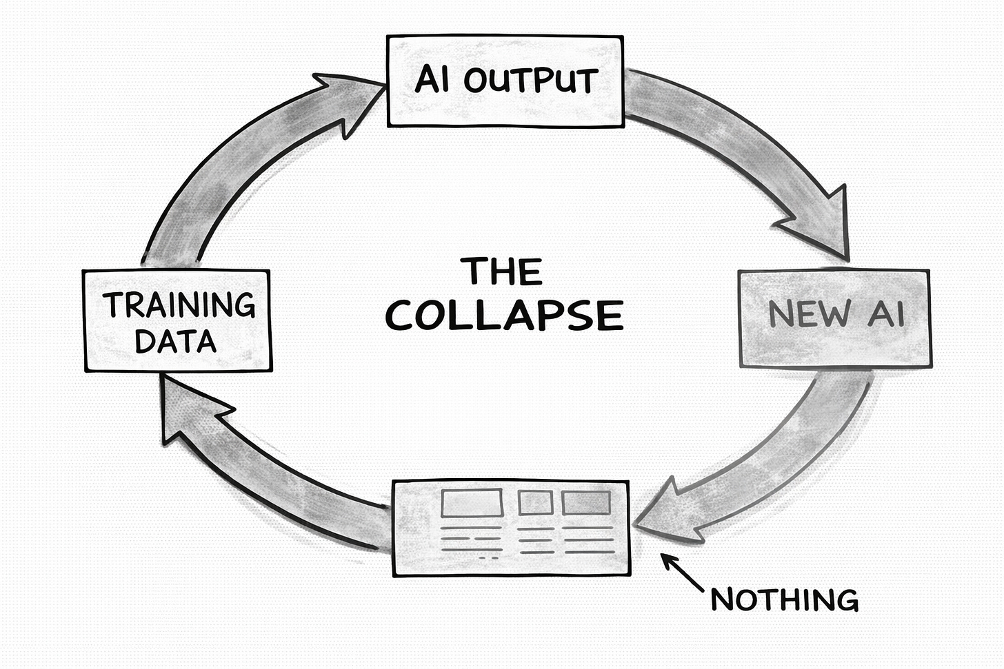 AI training on AI output, creating feedback loops where convergent content trains models to produce more convergent content. The slop generates slop that generates more slop.