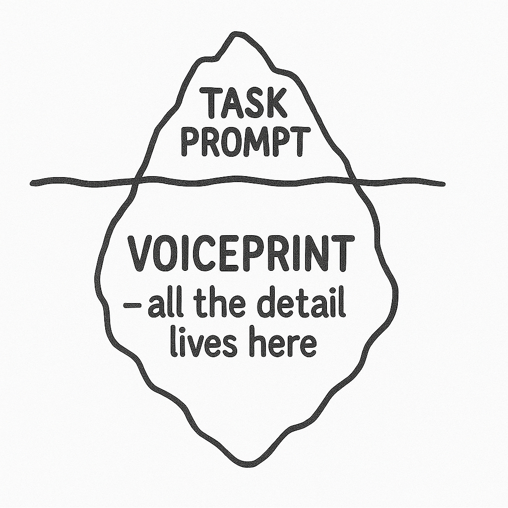 The shortest task prompt that produces usable output is the best task prompt for writing. Your Voiceprint handles the rest.
