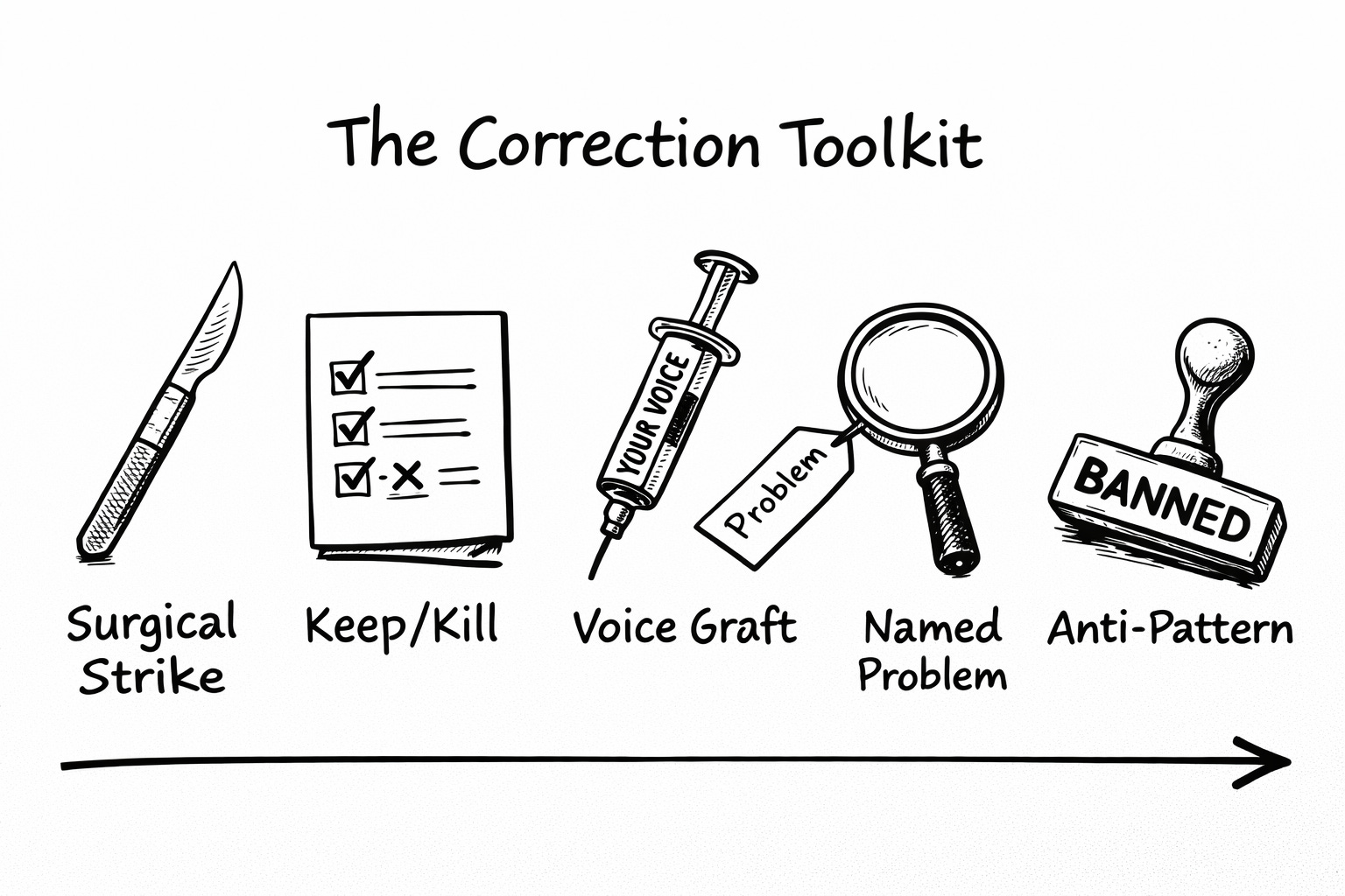 Most people hit this moment and do one of two things: accept the almost-right draft with minor tweaks (hello, ensloppification) or scrap everything and start the conversation over. Both are wrong. The skill is in what you say next. The correction. The specific, surgical response that turns a ninety-percent draft into something with your fingerprints on it.