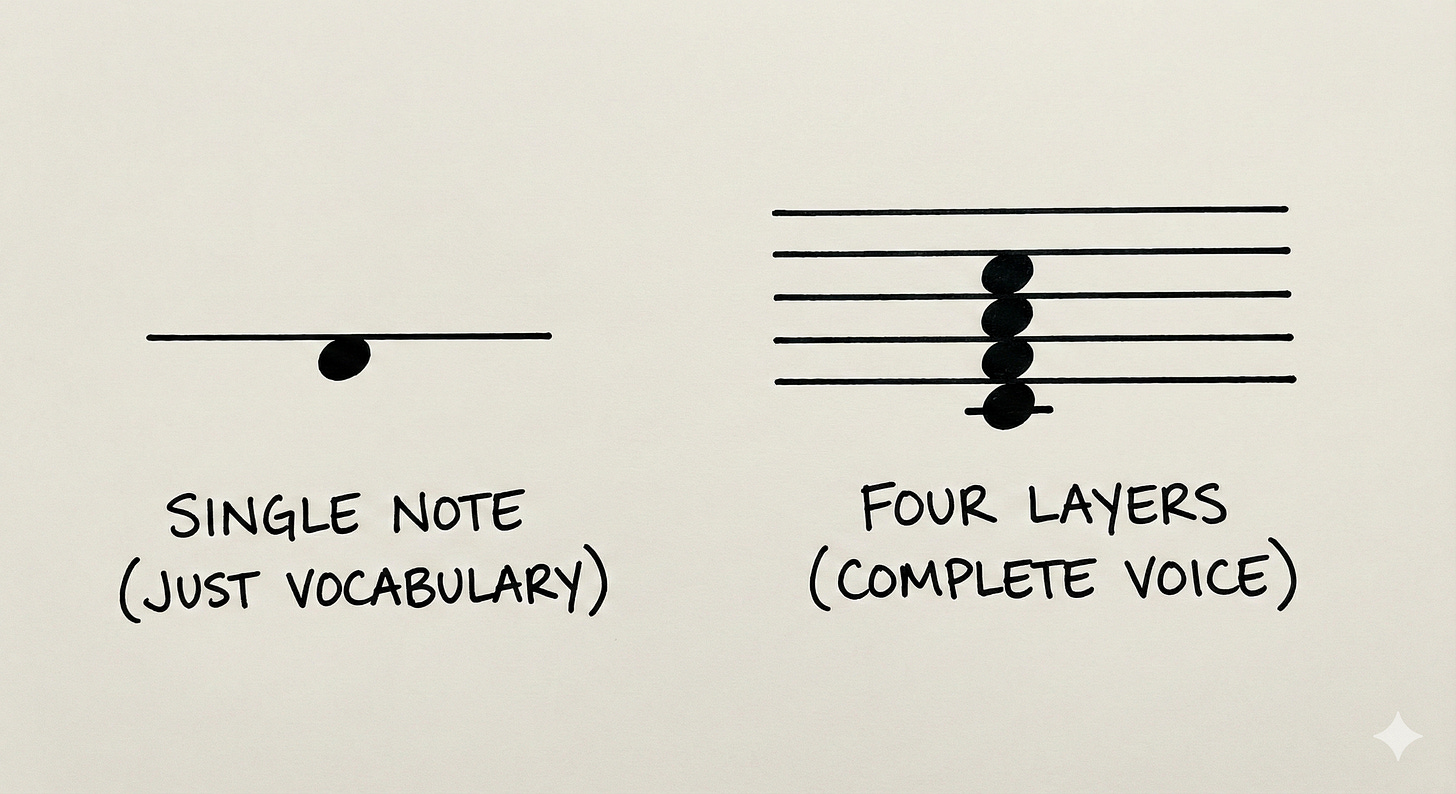 Bold closing thought: Your voice isn't a single pattern—it's four layers playing in harmony. Train the chord, not just the melody.