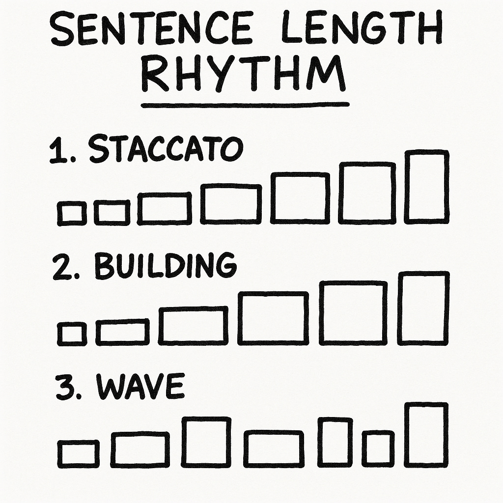 Rhythm: My natural pacing (short-long-short pattern, parenthetical aside)